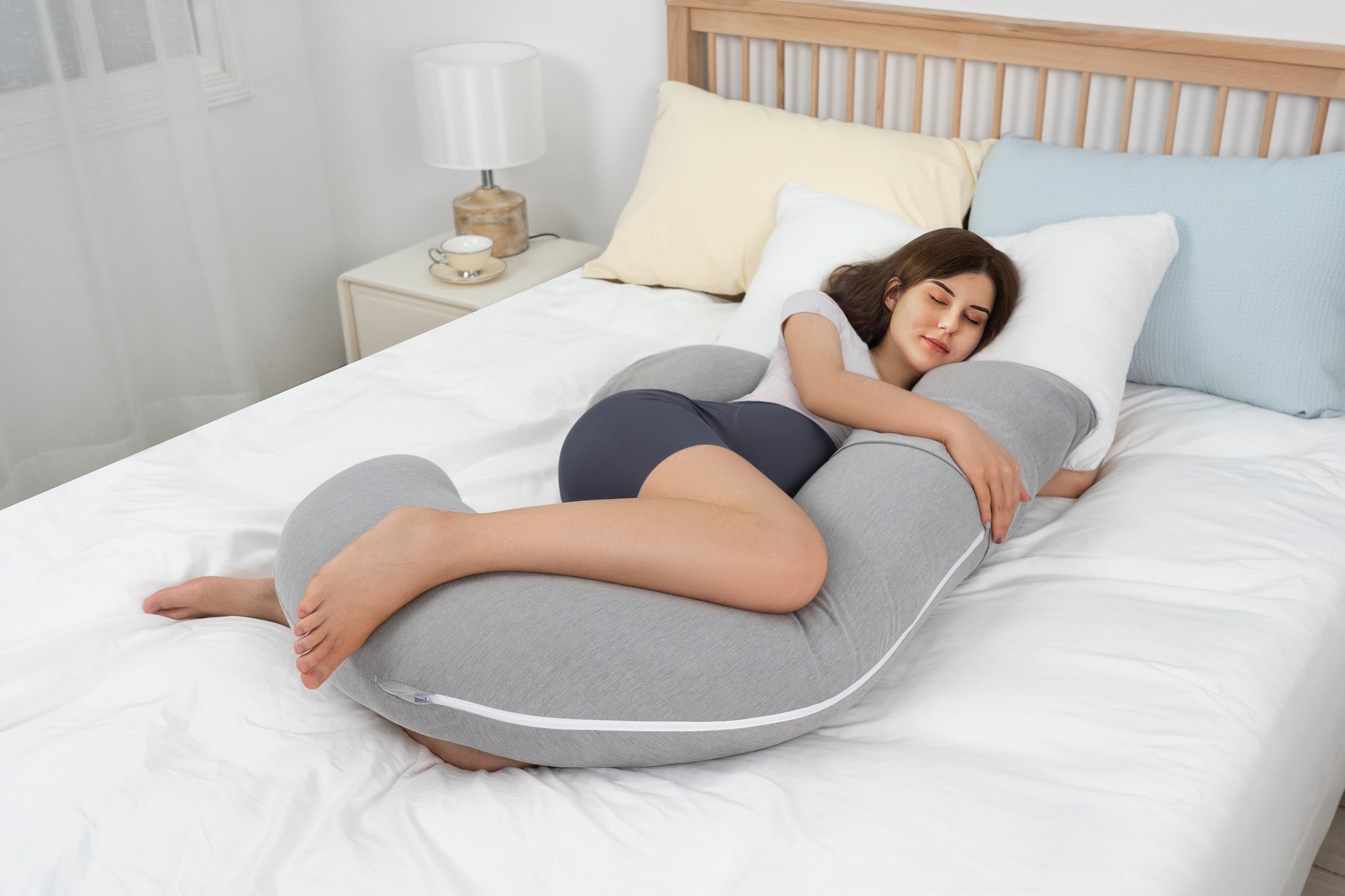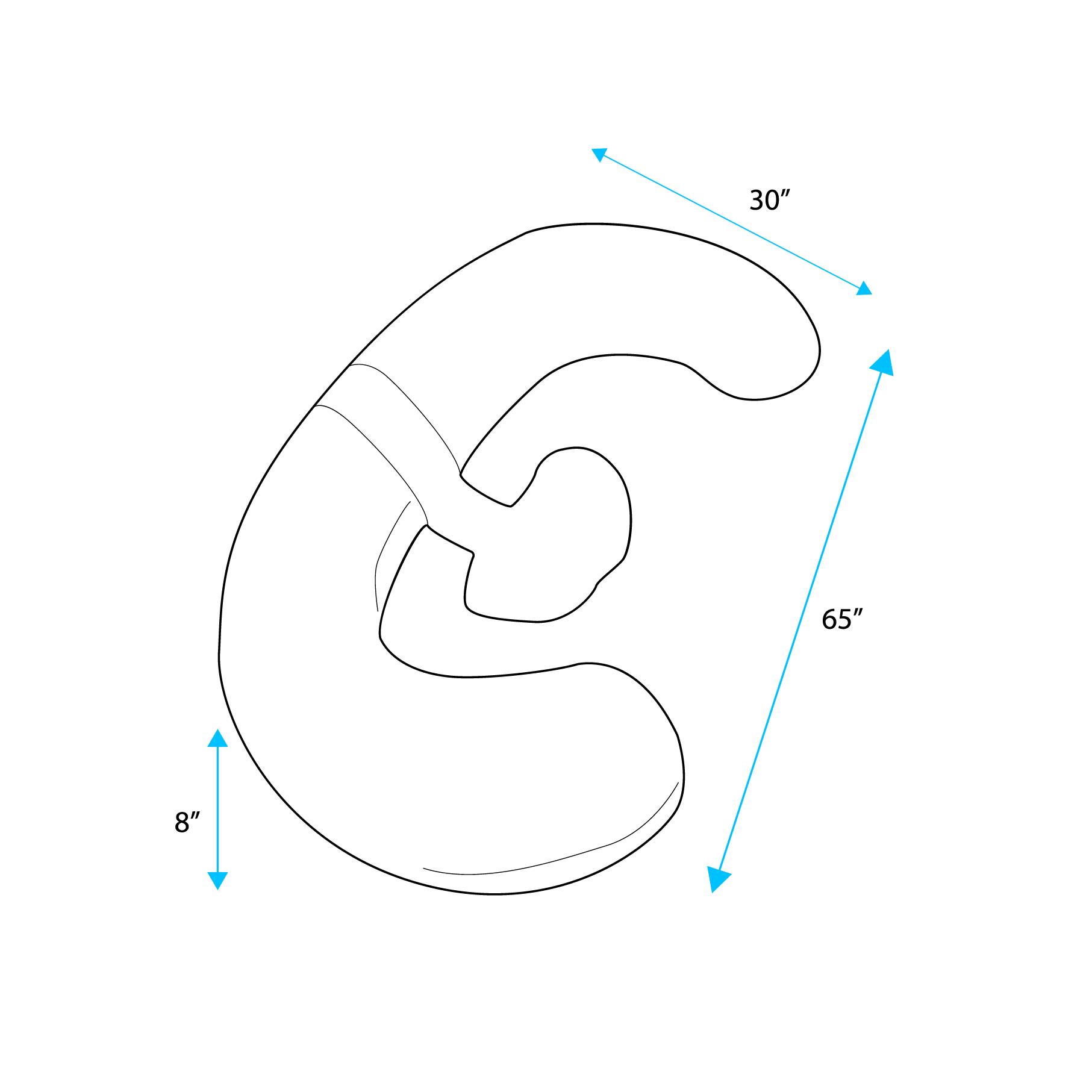 Our E-shaped maternity pillow comes with a removable and adjustable pillow wedge that is multi-functional so you can use it not only for your belly, but also as your neck or leg rest!