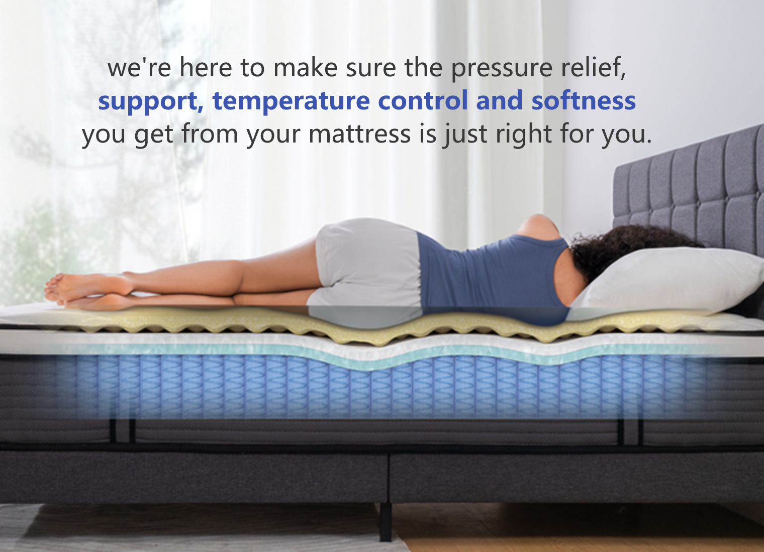 Our mattress features innovative cooling tech with a special layer that promotes airflow, keeping you cool with temperature drop to 35.6°F - 41°F throughout the night.