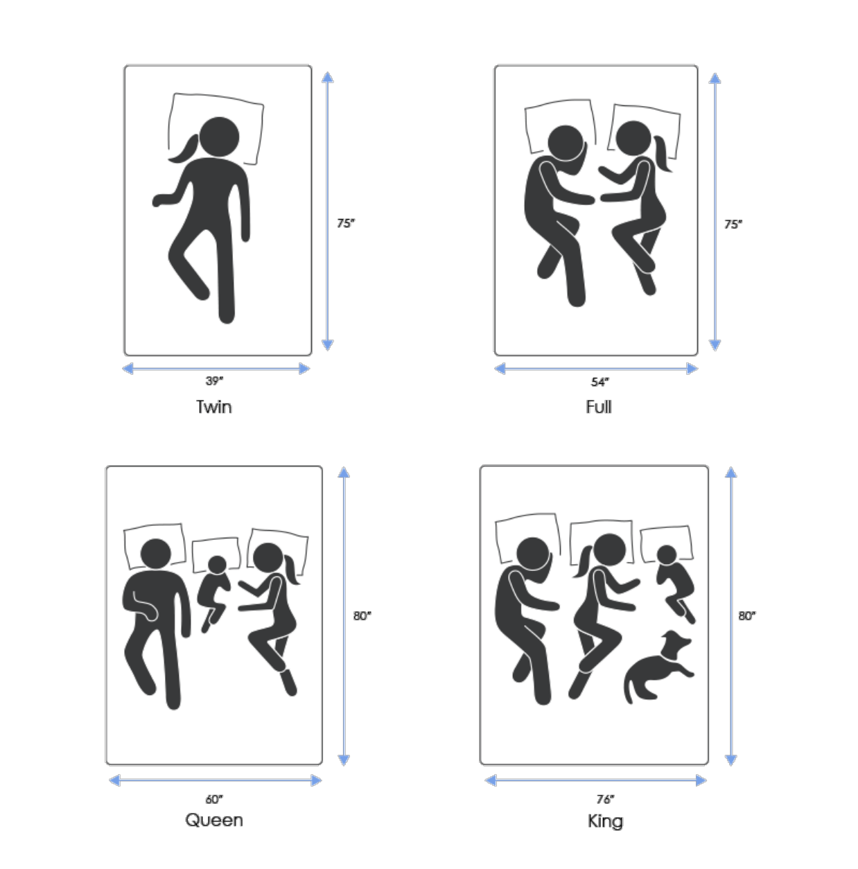 - Full: 75 (L) x 54 (W) x 12”(H)